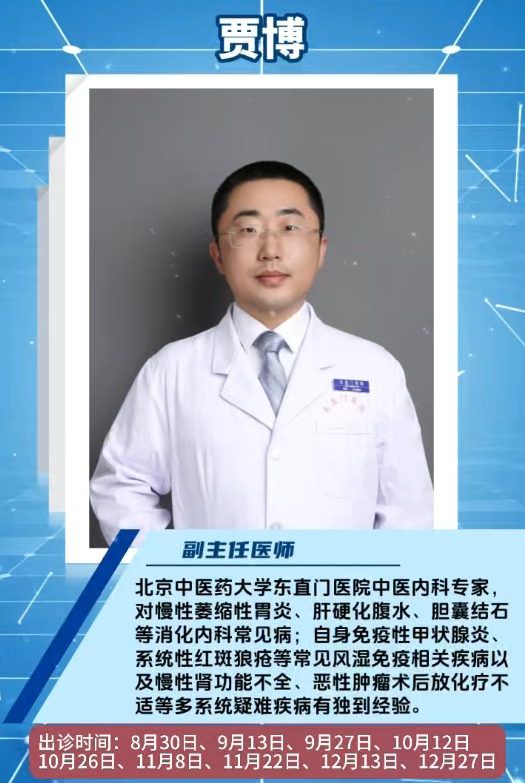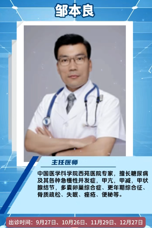 本次坐诊专家均来自北京知名三甲医院,既有深耕临床一线数十年的“实战派”,也有传承中医精髓的“学术派”。中日友好医院中医内科副主任医师、副教授江东向,从事中西医结合临床工作20余年,擅长运用“中药、针灸、西医”综合疗法治疗高血压、脑梗塞、功能性消化不良等老年慢性疾病,破解老年健康难题。国家级名老中医刘燕池学术传承人、中医妇科主任医师刘研,北京市第一中西医结合医院妇产科主任、主任医师王荣毓两位妇科“大咖”,覆盖妇科常见病、多发病到疑难肿瘤的全周期诊疗与健康管理,全程精准守护女性健康。北京中医药大学东直门医院中医内科副主任医师贾博,秉持“中西并重,针药结合”理念,为消化内科疾病、风湿免疫疾病及内分泌疾病患者解除困扰。中国医学科学院西苑医院内分泌科主任医师邹本良深耕内分泌领域20余年,通过“病证结合、中西协同”诊疗模式,为糖尿病和内分泌代谢性疾病患者带来福音。